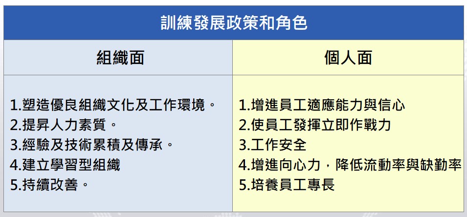 訓 練 發 展 政 策 和 角 色